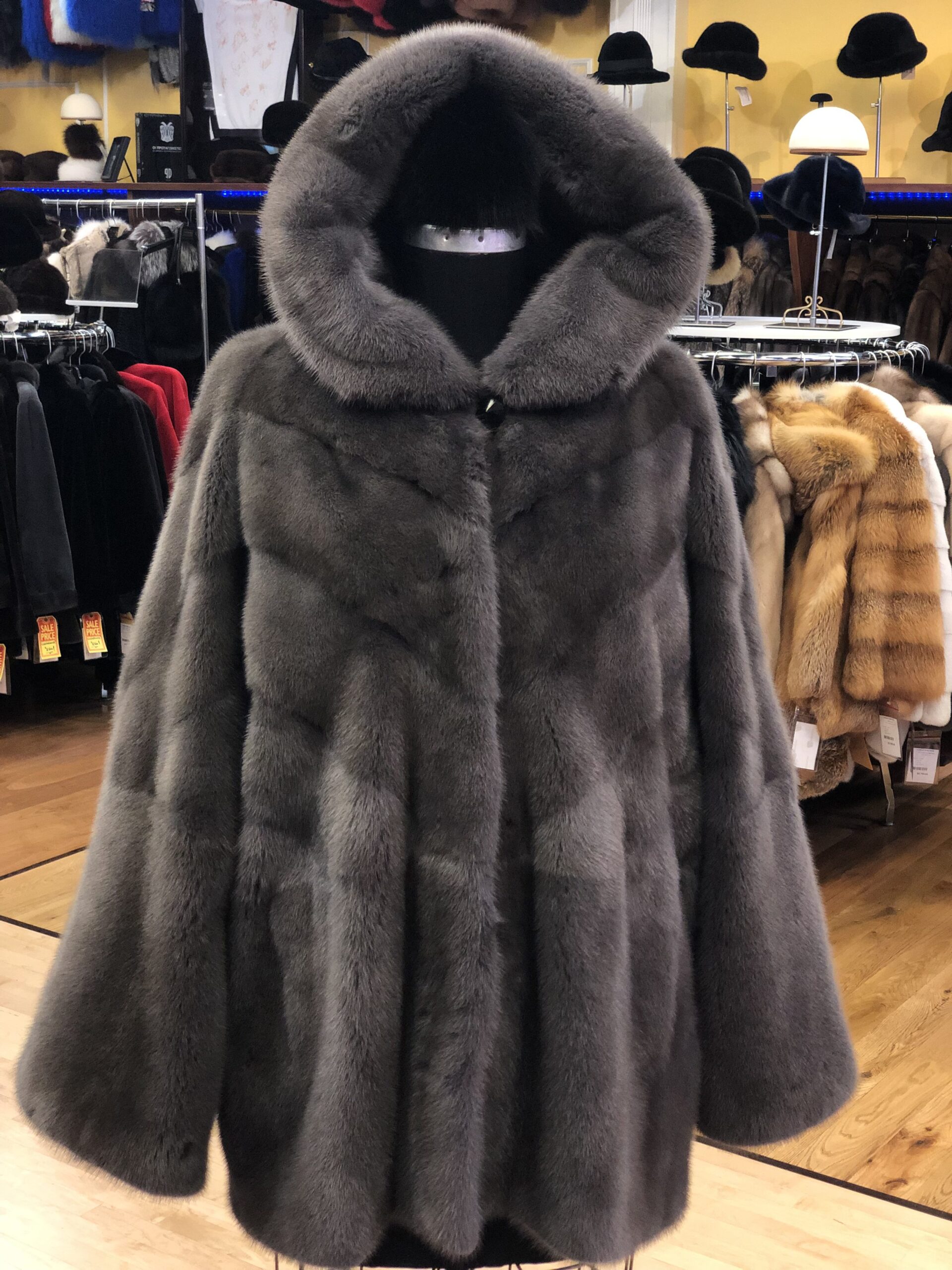A beautiful Grey Moon Mink Jacket from Demetrios.